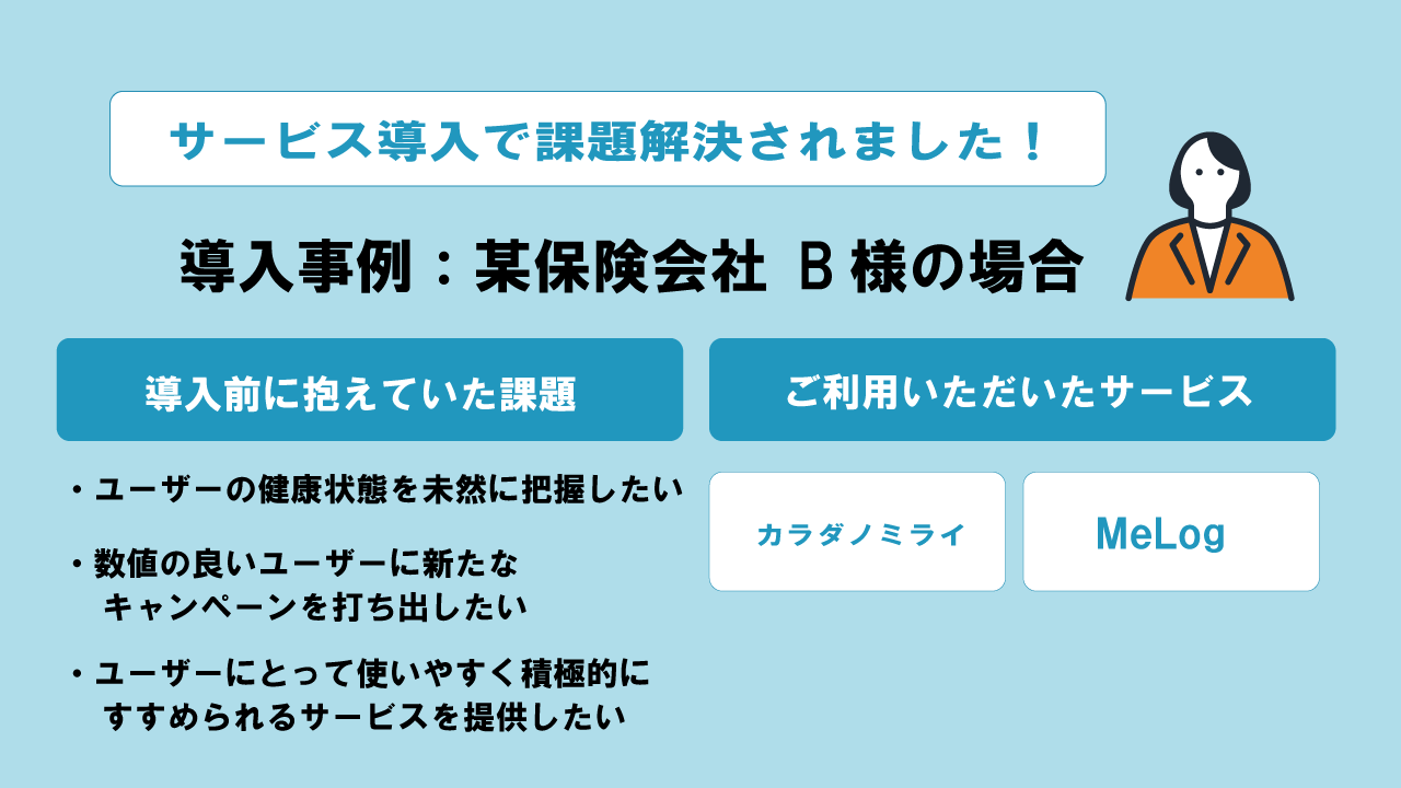 - 健康保険組合がヘルスケアアプリを導入することにより、加入者の健康促進や満足度向上、組合の効率化と成長につながります。